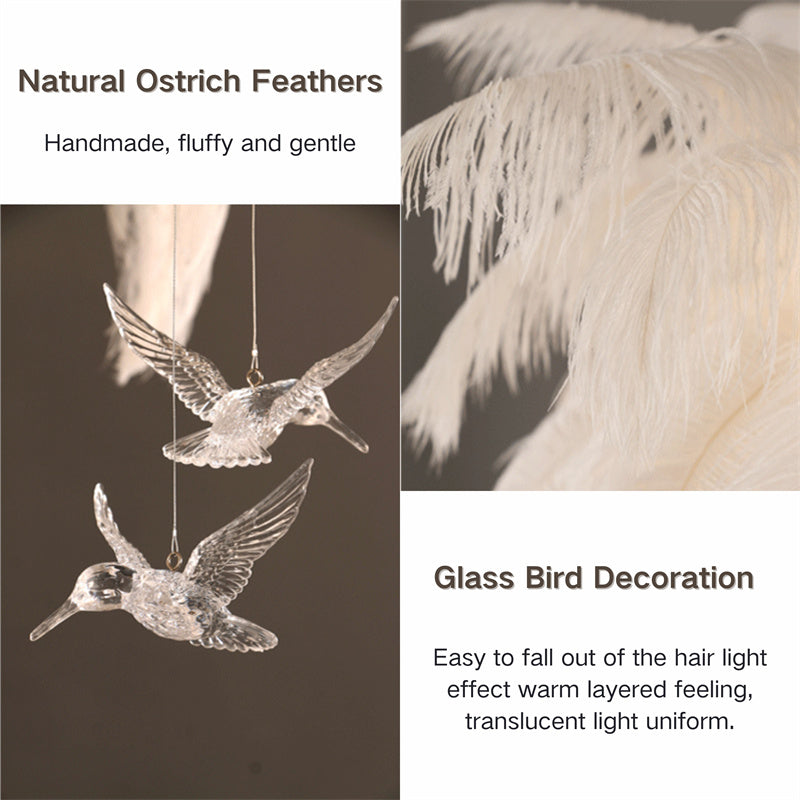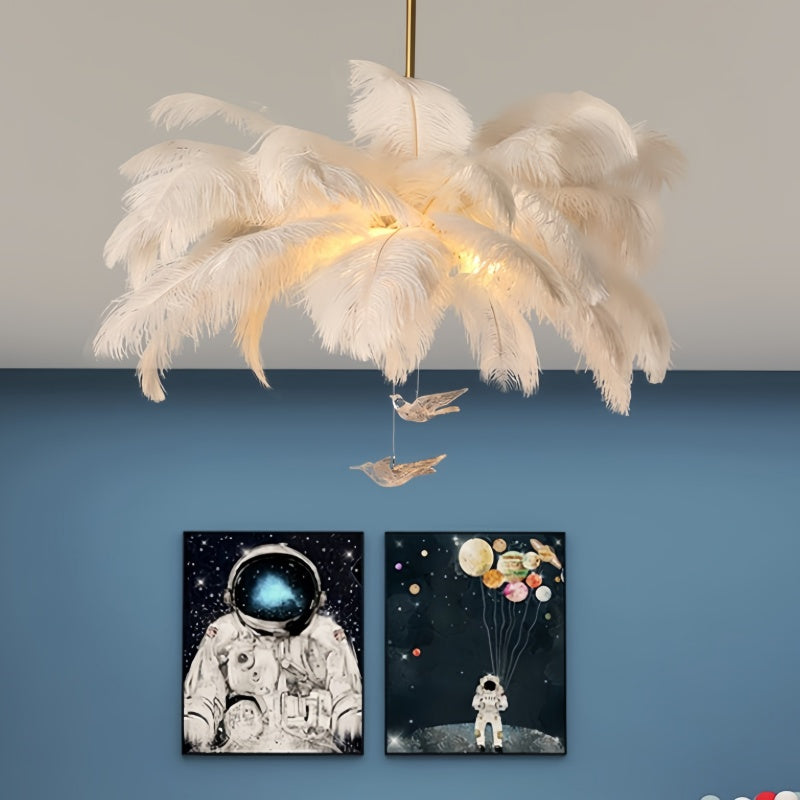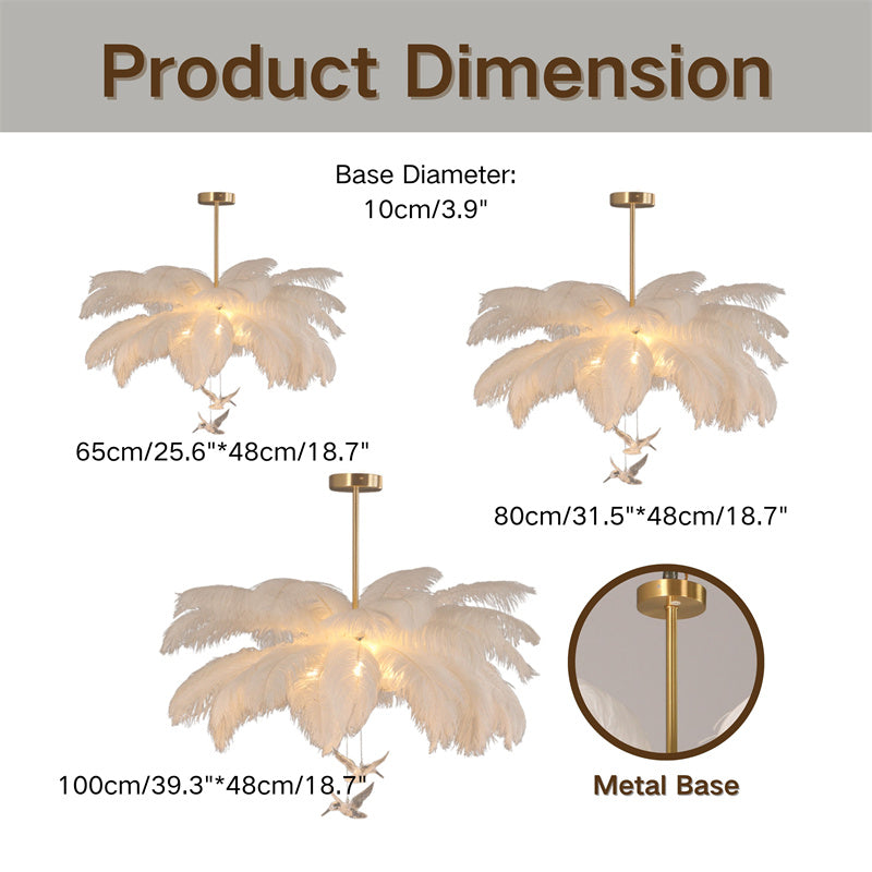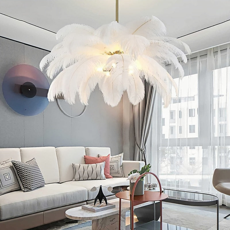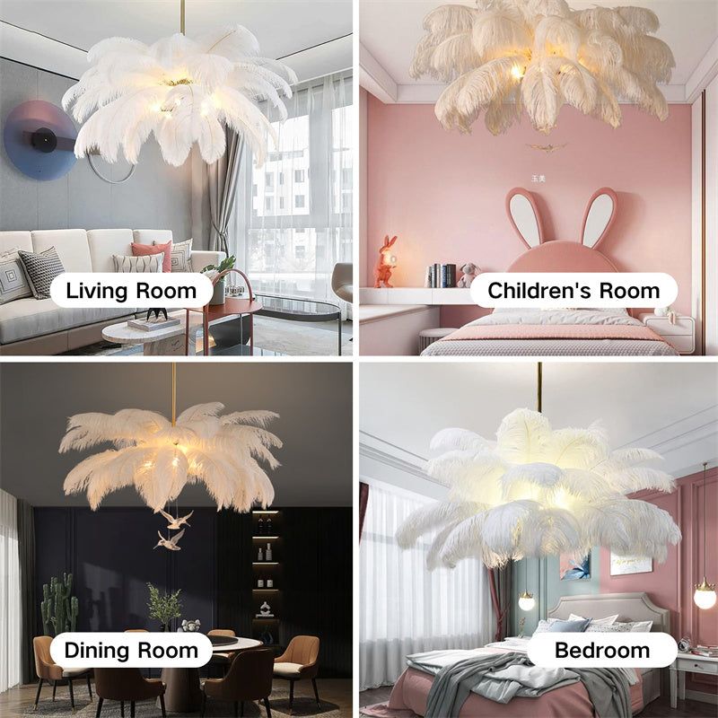 The Luxury Feather Chandelier brings elegance and sophistication to any space. Designed with high-quality ostrich feathers and a sleek iron body, this chandelier provides a soft, layered lighting effect with uniform brightness. Its spotlight design ensures even light distribution, creating a warm and inviting ambiance. The durable iron frame features a glossy finish, enhancing the fixture’s luxurious appeal. Ideal for living rooms, dining areas, bedrooms, and more, this chandelier is a statement piece that elevates any interior.